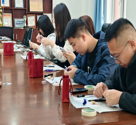 近日,我们以“翠羽承光,簪韵流芳”为主题在学院315会议室开展了点翠发簪非遗体验活动。学院教师在工会组织下,亲手制作点翠发簪,在指尖流转间感受传统工艺的细腻与华美。