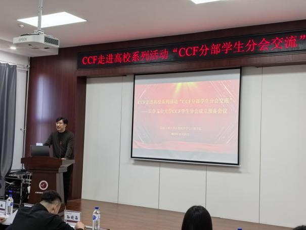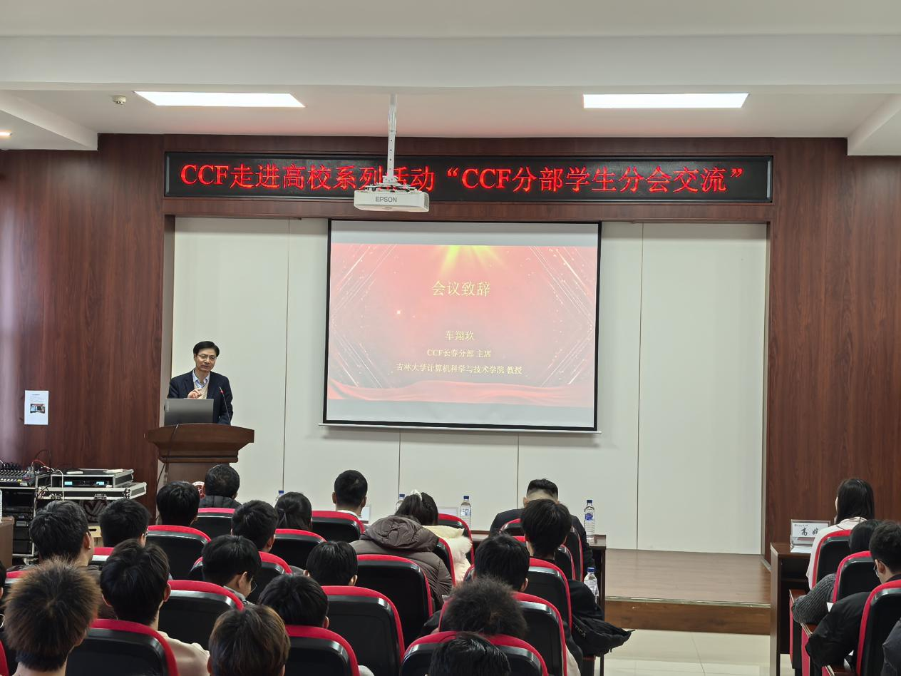 隆重举行。本次会议由学院副院长刘冰主持,院长程超、副院长鲁慧民等领导出席会议,同时特邀CCF长春分部主席车翔玖教授、副主席孙晓海总经理、监督委员会委员高婷副教授、吉林大学田地教授、企业代表王福德副总经理等嘉宾共同出席,旨在推动CCF学生分会建设,促进高校间学术交流与人才培养。