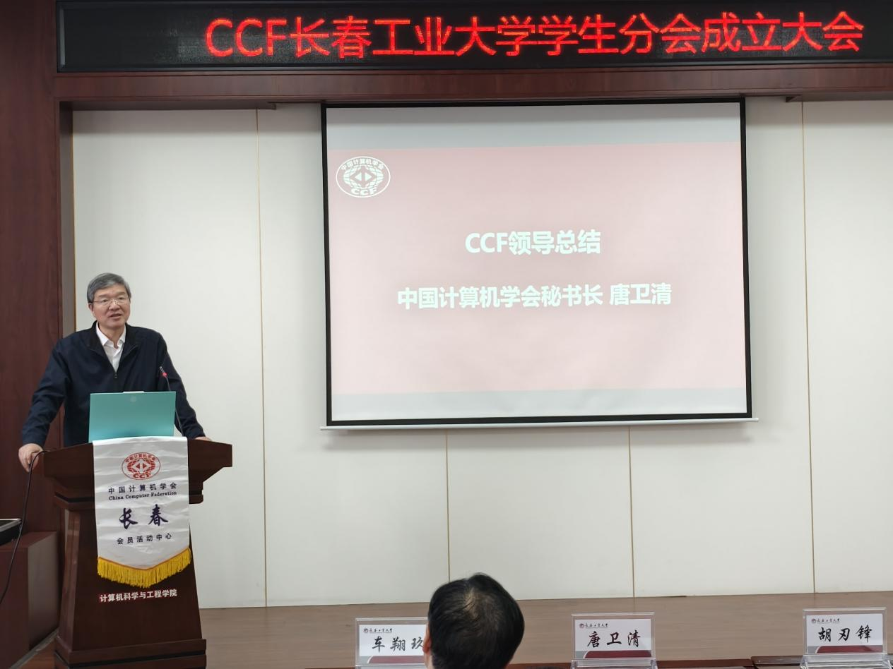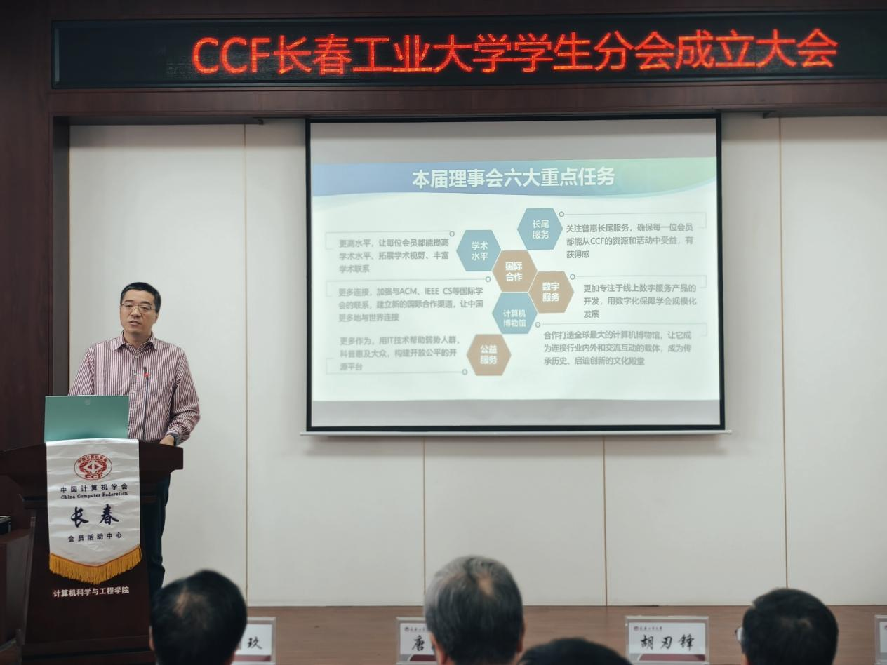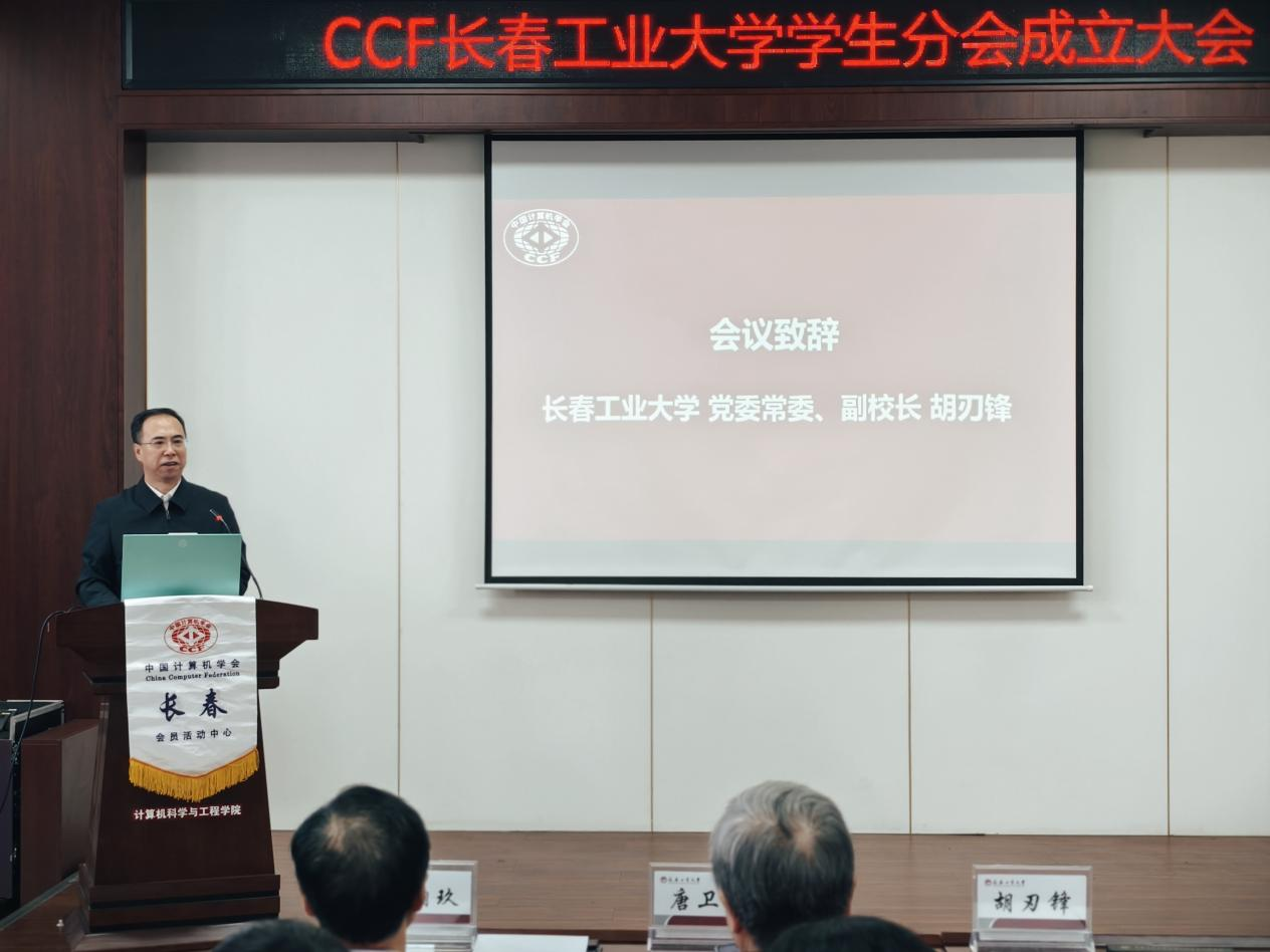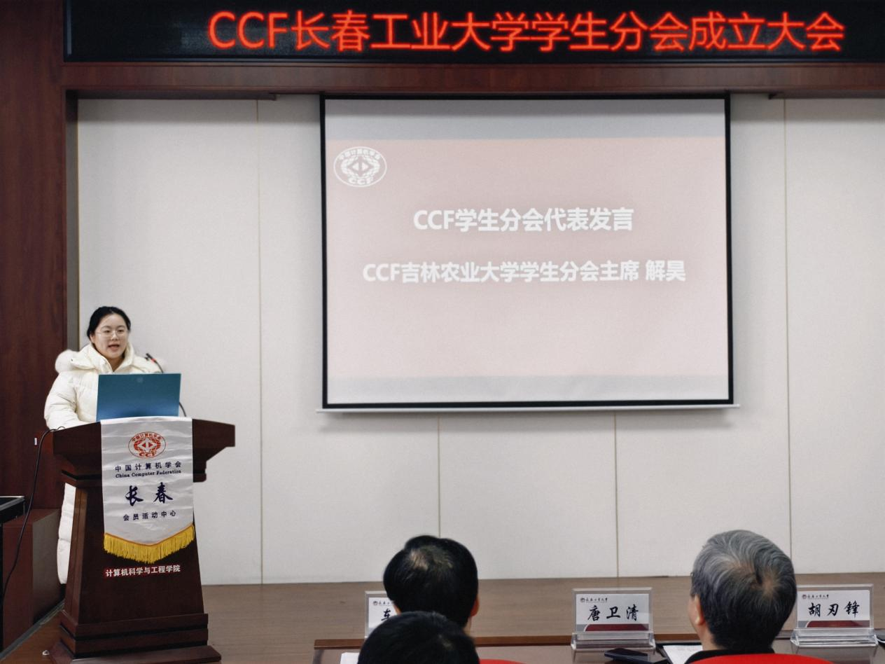 发展实际,搭建学术交流与实践创新平台,助力学生成长成才。CCF长春分部主席车翔玖教授代表组委会致辞,阐释了CCF学生分会的建设宗旨与发展方向;CCF会员与分部工委主任李贝则详细介绍了CCF的发展历程、组织架构与服务体系,为分会后续运作提供了专业指导。